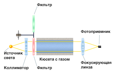 Данная конструкция используется для анализа газов, имеющих инфракрасный (ИК) спектр поглощения, таких как СО, СО2, СН4 и ряд других.